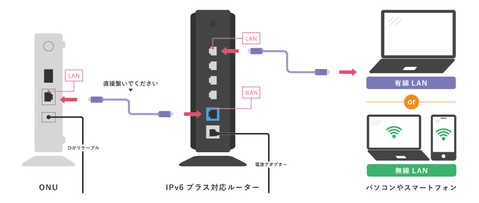 v6プラスは接続ID・パスワードが不要です。インターネットの接続に必要な情報は回線側から自動でお客様の機器に登録されます。
