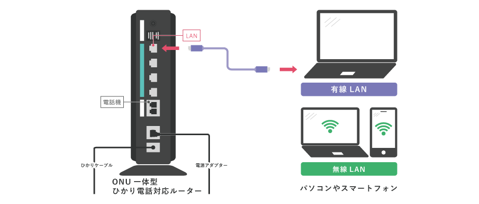 NTT製ひかり電話対応ルーター(HGW)+光回線終端装置(ONU)の場合